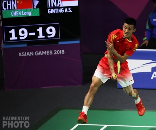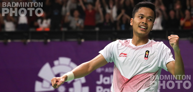 Home favourite Anthony Sinisuka Ginting (pictured above) is full of surprises.  A day after ousting World Champion Kento Momota, he sprang another one in the 2018 Asian Games quarter-final.  This time, he successfully defeated Olympic gold medallist Chen Long.