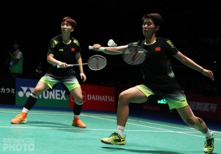 By the end of the quarter-final round, Japan’s fearsome legion of women’s doubles pairs had dwindled to just one with the tame loss of World Champions Matsumoto/Nagahara to the in-form Chinese duo of Du Yue and Li Yinhui (pictured). However, early in the day, two-time World Championship runners-up Yuki Fukushima / Sayaka Hirota (pictured below) showed their great performance to make their way into the final four with a win over 6th-seeded Thais Kititharakul/Prajongjai.