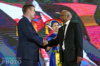 Also at the gala dinner that accompanied the BWF’s Annual General Meeting (AGM), awards were given out to three other members of the international badminton community. Belgian umpire Ronny de Vos received the Distinguished Service Award, Lifetime Achievement Awards went to Ranjit de Silva (pictured above) of Sri Lanka and to Canadian Jean-Guy Poitras.
