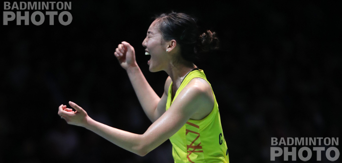 After Tai’s loss, Japanese Yuki Fukushima / Sayaka Hirota , who returned to the #1 spot in the women’s doubles world rankings this week, lost to China’s Li Wenmei / Zheng Yu (pictured below) in straight games. This result, too, will cost them their world ranking as World Champions Matsumoto/Nagahara will resume their reign when the new rankings are released.