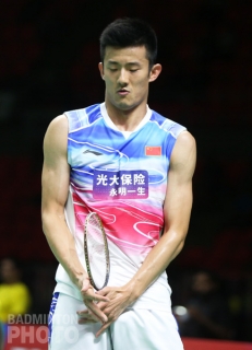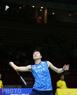 On an adjacent court to the Malaysian upset was the first ousting of a seeded men’s singles player. Chen Long had lost to Wang Tzu Wei (pictured left) before but today marked the first time the two players had finished a match in just two games. This one went to the Chinese Taipei shuttler, who will thus be the one to advance to play Ng Ka Long on Thursday.