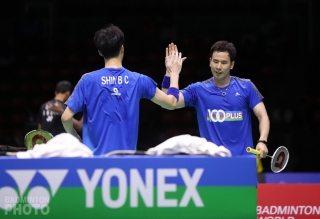 On their upcoming match against Ko Sung Hyun and Shin Baek Cheol (pictured below), Chirag said, “Obviously, it will be extremely tough. They are the former World Champions. But going into the match, I think we’ve been playing pretty well – we’ve beaten pretty good pairs – so if we keep our calm just like we did today, then I think we do stand a chance to beat them.