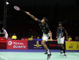 In the other half of the men’s doubles draw, Satwiksairaj Rankireddy and Chirag Shetty (pictured below) of India thwarted an all-Korean semi-final showdown when they beat Choi Sol Gyu and Seo Seung Jae. The Koreans played a precision flat game to even the match at one game apiece but the Indians were undaunted in the neck-and-neck decider and sprang forth from 18-19 down to finish out the match.