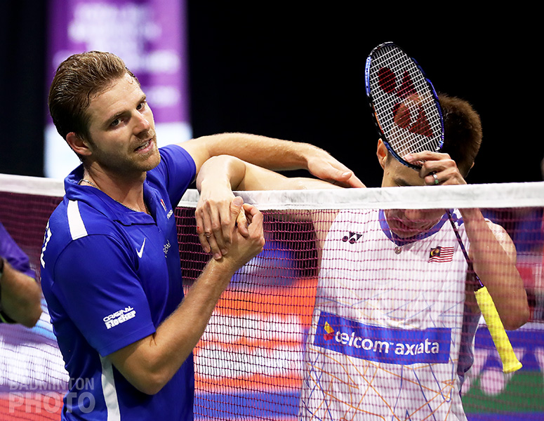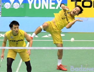 In the second game, they again got out to a promising 8-1 lead but Hiroyuki Endo / Yuta Watanabe (pictured bottom) didn’t give up. They used their defense to try to make the pace suit their style. This tactic worked well and Sonoda’s attacks lost some of their edge. Watanabe/Endo got the second game 21-18 then ran away with the decider. After the match, Sonoda didn’t appear in the prize ceremony because he needed to recover physically.