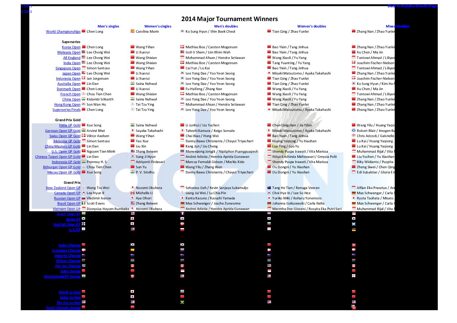 ![2014 Results ⇧ 2015 Results links ⇩ 2013 Results links Click here to see a table of major 2014 badminton event winners For 2014 major event medallists, click on the discipline below: […]](http://www.badzine.net/wp-content/uploads/2014-Results-winners-pdf.jpg)