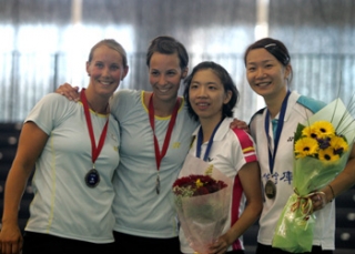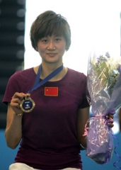The longest match of the day was Zhu Lin’s 72-minute marathon win over Germany’s Juliane Schenk, who became the first player on the week to take a game from the 2007 World Champion. For Zhu Lin (pictured below), it was a welcome return from her international hiatus as she took her first title since her Asian Championship last spring in Korea. Nor was a Grand Prix title in an out-of-the-way place like Canada in any way easy pickings for the Chinese veteran as she still had to elbow her way past two top-ten players and the world’s #20 player to make it to the top in Richmond.