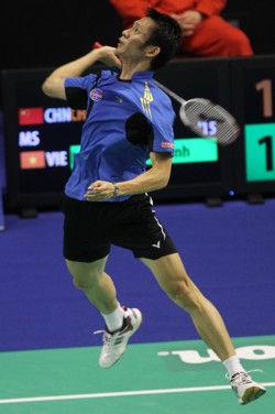 In the other semi-final, we have the remaining two of five former champions who started in Taipei this week. Current titleholder Nguyen Tien Minh (pictured) of Vietnam beat 7th-seeded Hafiz Hashim of Malaysia and will now take on previous champion Simon Santoso of Indonesia. Nguyen picked up his first title of the year in Australia last month while Santoso is looking to enter his first final of 2010 here in Taipei.