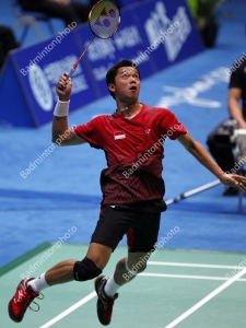 First, Taufik Hidayat (pictured) and Lin Dan fought with ups and downs in the quality of the game, but there were times when both shuttlers showed their best level, with amazing rallies – in the first part of the first game, and then again towards the end of the match, where Lin Dan saved 2 game points to come back from 18-20 to finally beat Taufik 21-13, 23-21. It was a symbolic victory for the Chinese legend, who had been deprived of the Asian Games gold medal last time by Taufik, in Doha in 2006.