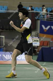 The women’s singles was a repeat of this year’s Badminton Asia Championship final between Li Xuerui and Liu Xin (pictured). Liu had the upper hand this time, though, winning handily 21-9, 21-14 to take her second Grand Prix title of the year after winning the Bitburger Open earlier this fall. If late 2008 saw the advent of Wang Lin and Wang Yihan and 2009 was the coming out party for Wangs Xin and Shixian, 2010 has marked the arrival of Li and Liu. Next year Chen Xiaojia and who else?