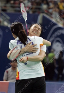 When Tao/Tian were leading at 13-12 in the third game, Tao did a brilliant low cross court shot with his backhand but Ma seemed to be onto his tricks by then and got the shuttle back. Tao did almost all the attacking in the third game while Tian did almost all the defense today, but this is still not enough as He/Ma seemed to be better today and they celebrated their victory after winning 21-16 in the third game.