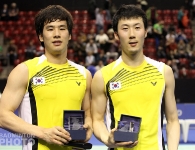 The Koreans started much stronger in the second game and led all the way until the Indonesians erased a 3-point lead to draw level, again at 18-all. The two then proceeded to trade points until Hendra let a Korean lift fall on the back line, his protests against the call to no avail.