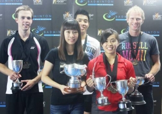 The New Zealand National Championships were held in Auckland (North Harbour) last weekend (18-20 March). The Ladies Singles was an all Auckland Badminton Association affair between Kylie Luo and Lilian Shi, just 16 years of age and who caused an upset by beating the number one seed Anna Rankin from Southland on the way to that final. Kylie Luo dominated the final to win her first New Zealand singles title. Kylie also went on the win the ladies doubles title partnering with Stephanie Cheng, also from Auckland for her first national title. They beat Danielle Barry and Mary O’Connor from Waitakere in the final. Stephanie also made it two titles when winning the mixed doubles final partnering Kevin Dennerly-Minturn from Auckland beating Luke Charlesworth and Mary O’Connor from Waitakere in straight games. It was then Kevin’s turn to make it two and he pulled it off by winning the men’s doubles partnering Henry Tam from Auckland when facing two young players from Auckland (both 16 years old) Samuel Ho and Riga Oud.