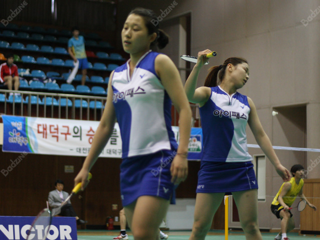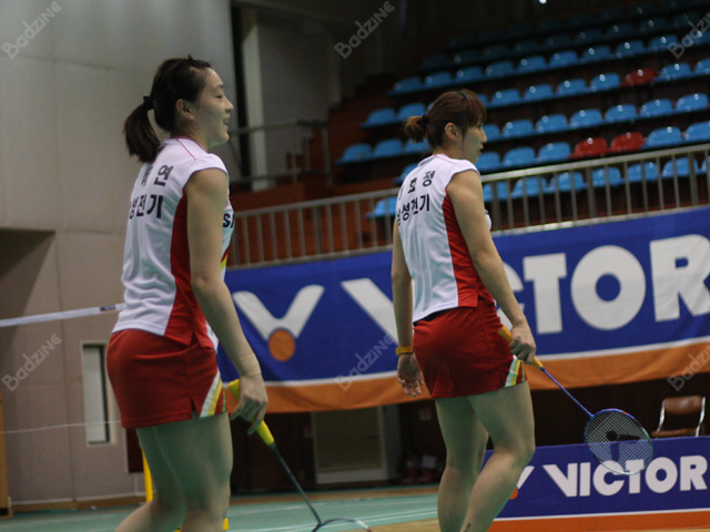 However, the more experienced Samsung doubles players managed to eke out two straight victories, including Kim Min Seo / Park So Ri’s 21-15, 18-21, 21-19 win over KGC’s Jung Kyung Eun / Bae Seung Hee (pictured below).