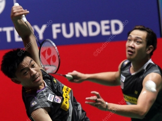 On court 2 were featured the defending champions Cai Yun / Fu Haifeng of China, who overpowered Denmark’s Mads Conrad-Petersen / Jonas Rasmussen through a very quick-finishing 21-10, 21-13 straight-game win with Fu, former holder of the world’s fastest smash, once again displaying his attacking prowess.