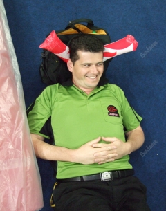Badminton is not very well known in Belgium, despite the fact that there are more than 30,000 players. The Belgian Badminton Federation is split up into the Flemmisch League and the Walloon League. The split was made for political and financial reasons. It is not always easy to work that way, but the family of technical officials understand each other very well. We don’t have to wait for more than 500 days as the politicians do to form a government.