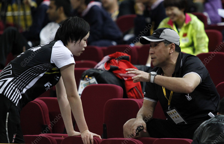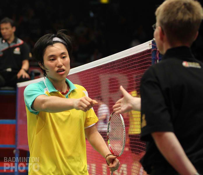 Earlier in the afternoon, Japan’s Naoki Kawamae / Shoji Sato and Singapore’s Danny Bawa Chrisnanta / Vanessa Neo ousted their higher ranked opponents and received their tickets to play in the quarterfinals of the men’s doubles and mixed doubles, respectively, on Friday. Meanwhile, Li Xuerui (pictured right) remained as the only Chinese lady left ‘met yet unbeaten’ by Sung Ji Hyun, as she breezed past Sung in straight games.