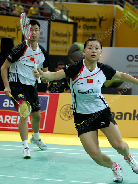In the mixed doubles semi final early this morning, last week Korea Open champion Xu Chen/Ma Jin (photo) continue their victory in today’s semi final as they carved out a clinical 21-17, 21-14 win over the Tontowi Ahmad and Liliyana Natsir. Xu/Ma never looked to be under any serious threat throughout the whole match even they were one time trailing behind 10-6 in the second set. Ma Jin was just awesome today because her great dominance at the net makes her so incredible to watch.