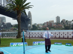 I rocked up to The Rocks – as the edge of the CBD sandwiched between the iconic Harbour Bridge and Opera House is known – to find out what the big deal was. What I found was a proper makeshift court and confirmation that the Australian Badminton Open was leaving it’s epicentre, the state of Victoria, and transferring to Sydney for at least a couple of years.