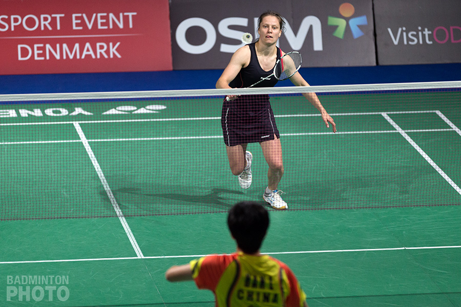 When Jenny Wallwork was warming up for her women’s doubles match together with Gabby White, she couldn’t refrain from taking quick looks at what was happening on the near court, where Chris Adcock and Imogen Bankier (photo) were about to create the upset of the day: they were serving with 4 match points in their racket against the world’s best pair of Zhang Nan and Zhao Yunlei: the very same pair which had beaten them in the final of the World Championships last year.