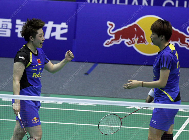Wang Xiaoli and Yu Yang (pictured), also part of the 2010 Uber Cup defeat, also vowed to redeem themselves today, in front of a ecstatic crowd. The two super players, almost unbeatable since the first days of their partnership in late 2010, relied on their fantastic ability to win the first doubles point in two straight games.