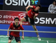 In the mixed doubles final, once again an unseeded Chinese pair had to face Korean favourites, in this case second-seeded Choi Sol Kyu / Chae Yoo Jung. After dropping the first, the Koreans stayed close in the second game until an 8-all tie, after which the Chinese went on a 5-point run that forced the home pair to play catch-up for the remainder of the game.