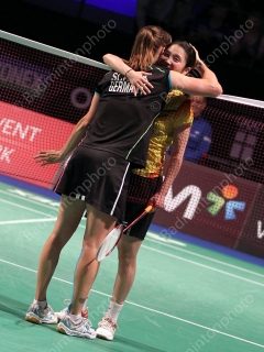 In the final game, Matsutomo/Takahashi turned their playing style around completely, hitting the shuttle down while only defending as needed, thus utilizing their “strongest spear”. The attackers were rewarded well, with the Chinese pair finding no reply for the speed and precision. Thus Misaki Matsutomo and Ayaka Takahashi can now boast of being one of the few pairs to have beaten the almost invincible Tian Qing and Zhao Yunlei.