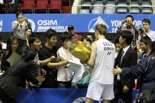 Just to show how popular Gade is in Tokyo, the tournament organizers arranged a nice ceremony for his retirement right before the finals. Peter, accompanied by his family, addressed the crowd and thanked them for their kind support during all these years.