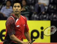 Musica’s oldest competitor, however, was not so lucky. Sigit Budiarto (pictured) – former World Champion with present team-mate Rendra Wijaya’s brother Candra – came up short when he and Fran Kurniawan fell in two quick ones to Macau Open champions Lee Sheng Mu / Tsai Chia Hsin.