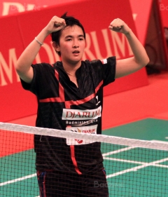 The tie came down to a 3-game bout between veteran star Taufik Hidayat (pictured) and unknown 21-year-old Hermansyah, which Taufik finally won 21-11, 17-21, 21-10.