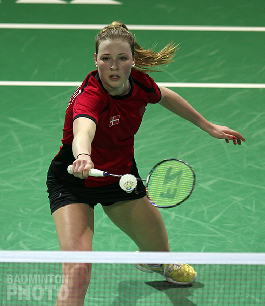 The opening match of the encounter saw Germany’s own world number four, Julian Schenk, taking on the up-and-coming Danish youngster, eighteen-year-old Line Kjaersfeldt (pictured). The arch favourite Juliane Schenk left no chances to her younger opponent, releasing all her repertoire of shots to prevent the tall Dane from finding any angles on court.