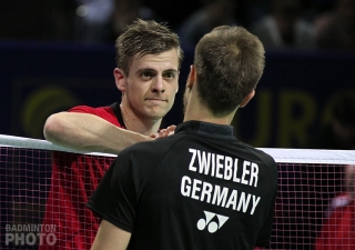 The German, ranked 20th in the world, didn’t seem to be affected by a harsh loss in the second game, where he went down 7-21, but in fact showed an even more eager aspect in the rubber, looking sharper, with fantastic and accurate net play. Zwiebler played a perfect third game to take a second point for Germany with a 21-17, 7-21, 21-8 victory and this left Denmark needing to begin their comeback in the women’s doubles.