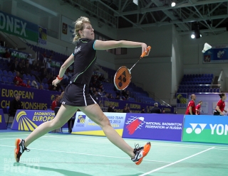 A close match was fought between France and Ireland, level at the top of Group 6 to decide who would progress. Chloe Magee (pictured) played well to win both the mixed and women’s singles but Scott Evans, entered in both the men’s singles and doubles, felt the strain as both matches went to three and ended in favour of the French. With the score 2-2, Lansac/Lefel took a relatively simple 21-12 21-16 against Chambers / King to put the French through.