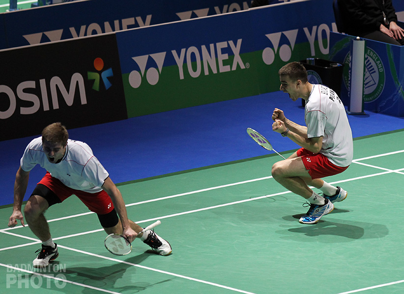 Earlier another surprise was had in the men’s doubles, as Chinese pair Hong Wei and Shen Ye were forced to join compatriots Cai Yun and Fu Haifeng (who withdrew due to injury) on the sidelines, as they lost an exciting three set match to Polish pair Lukasz Moren and Wojciech Szkudlarczyk (pictured below).