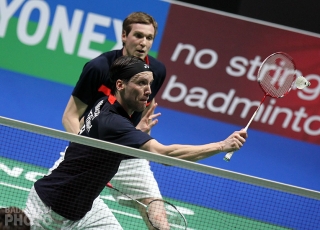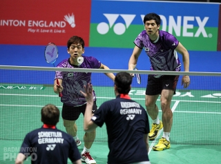 Defending champion Lee Yong Dae (pictured right with Ko Sung Hyun) playing in his first All England with new partner Ko, suffered a shock exit in straight sets at the hands of Ingo Kindervater and Johannes Schoettler (pictured below).