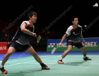 Malaysia made it an even draw as the men’s doubles world #2 Koo Kien Keat / Tan Boon Heong (pictured above) defeated Hendra Setiawan, who was left partnering Ryan Agung Saputro when Muhammad Ahsan skipped the Saturday matches for a wedding. A controversial decision made by a line judge in extra points contributed to an edge by the former All England champions, who won it 21-12, 26-24.