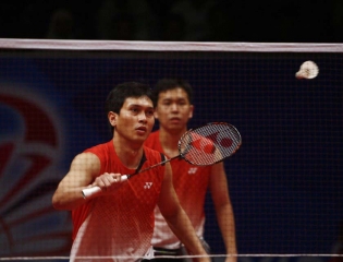 In fact, Sonia Cheah’s win against her Asia All Star counterpart Tai Tzu Ying gave Europe a golden opportunity, as they began their last team tie needing to get two more wins than Asia to qualify for the semi-finals. Ivan Sozonov and Vladimir Ivanov were tantalizingly close to upsetting Hendra Setiawan / Mohammad Ahsan (pictured above left) but the Malaysia Open champions finally snatched the 22-20, 21-19 victory.