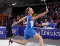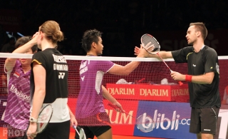 Indonesians Tontowi Ahmad/ Liliyana Natsir had to let go the coveted final berth in the international badminton tournament held at home after they were defeated by Denmark’s Joachim Fischer Nielsen / Christinna Pedersen (pictured below) in two quick games which the Danes won 21-14, 21-15. The No. 2 seeds committed many mistakes that made them seem tense during the match.