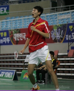While Korea losing a mixed doubles point to China may not be that unusual, Korea winning one in boys’ singles is far less common but that’s exactly what happened. German Junior Open champion Jeon Hyuk Jin (pictured) beat back one game point from China’s Lin Guipu in the first game before taking the second match 22-20, 21-17 and keeping Korea in it.