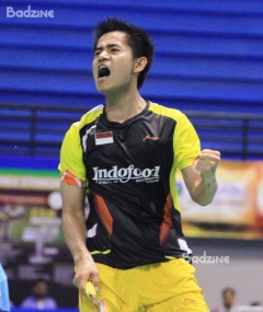 Indonesia had already locked up the men’s singles and doubles titles after booking two all-Indonesian semi-finals. Top seed and 2011 finalist Tommy Sugiarto was forced to bow to his team-mate Simon Santoso’s excellence and experience and failed to enter a second final. Tommy played under pressure in the first game and trailed Simon until the end of the game.