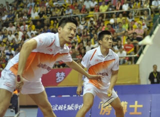 Soon the crowd’s spirits were dampened when they saw the line-up on the screen. Lin Dan was absent while Li Xuerui would play women’s doubles instead of women’s singles, the tie was put out of Bayi’s reach from the very beginning. In the post-match interview, the Bayi coach explained that Lin Dan had sprained his foot during his match in the second round, and Li Xuerui was suffering from a knee injury. Fortunately, the disappointed audience would find there were still some interesting matches to watch even without Lin Dan.