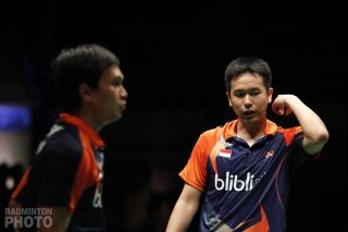 Men’s doubles defending champions and first seeds Mohammad Ahsan / Hendra Setiawan were forced to leave the grounds when 2012 champion Lee Sheng Mu came back with a different partner – Tsai Chia Hsin – to clear their way through the tournament. Chen Long was again troubled by a qualifier, Wei Nan of Hong Kong, before managing to get through to the next round.