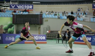 Shin Baek Cheol also felt very comfortable playing in Gimcheon, where he plays for the city badminton team. Unlike his partner Yoo Yeon Seong (pictured below), who settled for two silvers when the Badminton Asia Championships were held in the city he plays for in 2009, Shin was able to leave with one title today.