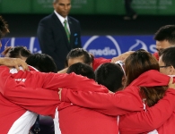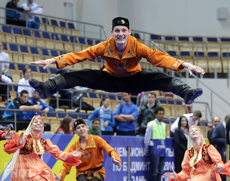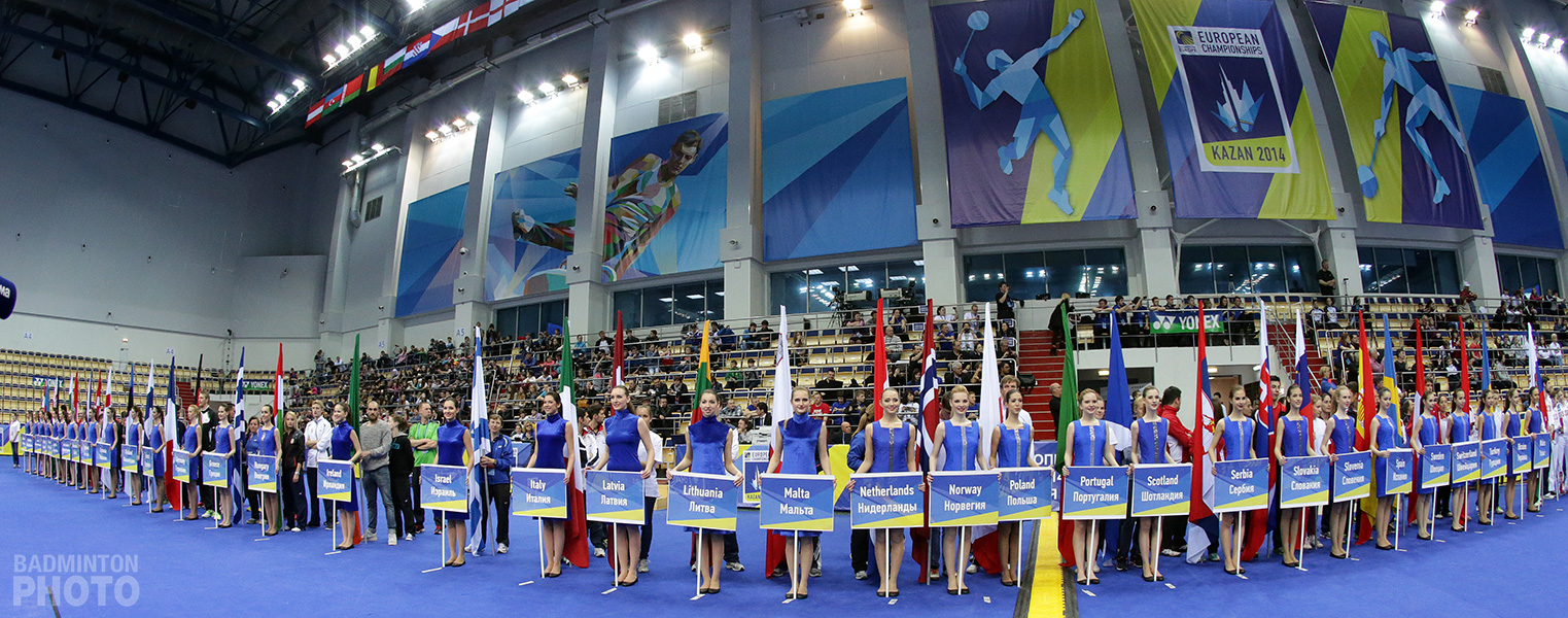 Day one at the 2014 Intersport European Championships in Kazan, Russia, kicked off with the ritual ceremonial where players were marching behind their country names and carrying their flags. There were some smiling moments when players discovered heavy beards on Scott Evans, Kestutis Navickas and Ville Lang, followed by local dances which reminded how flexible Russians are. In the splendid hall with all four courts evenly lit, the competition could begin.