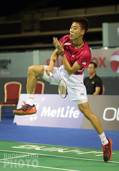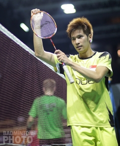 Derek Wong (pictured below), who was promoted to the main draw upon withdrawal of second seed Kenichi Tago, made full use of this golden opportunity and advanced to the second round. He defeated Hans-Kristian Vittinghus, Denmark’s #2 single shuttler, who is ranked 30 notches above him, in three games that all finished 21-16.