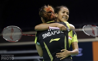 Shinta Mulia Sari and Yao Lei (pictured top) sustain the hope of repeating their 2010 victory in Singapore by beating 4th seed Koreans Jang Ye Na / Kim So Young in a thrilling 21-19, 21-18, creating one of the biggest upsets of the day.