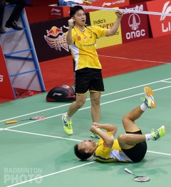 In a crazy atmosphere, the two Malaysians fought hard with their nerves to beat the current best pair in the world, taking the first game with a slight margin and being completely bested in the second.