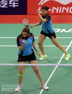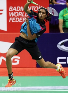 Saina Nehwal started off well for the home team by taking the first point from World Champion Ratchanok Intanon in 22-20, 21-14. She was well supported by India’s second singles P.V. Sindhu (pictured left) and then the first doubles Jwala Gutta / Ashwini Ponnappa (pictured right), as India went on to wrap up the team’s victory at the first available opportunity, by beating Porntip Buranaprasertsuk and Duanganong Aroonkesorn / Savitree Amitrapai, respectively.