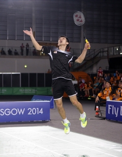 England’s Mr Reliable broke down in the next game, as Chong Wei Feng (pictured right) took the men’s singles in three.