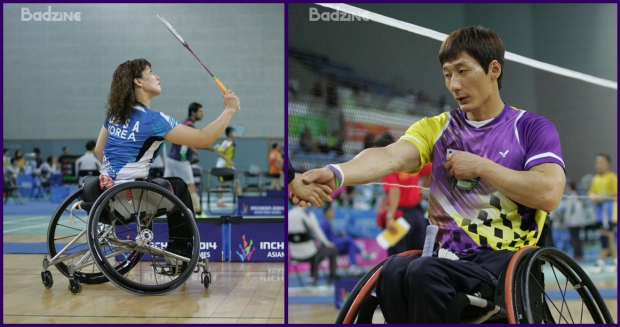 Korea took 4 of 5 golds in the wheelchair categories. Choi Jung Man (pictured above, right) became the first Asian Para Games double gold medallist in wheelchair badminton. He won gruelling contests in both doubles and singles against team-mate Lee Sam Seop, who was his partner winning gold at the FESPIC Games back in 2003. Lee, who won three golds at the World Championships in 2009, finished with 3 silvers this time around. His mixed doubles partner Lee Sun Ae (pictured above left) also missed out on the opportunity for two golds when they came up short in that final.