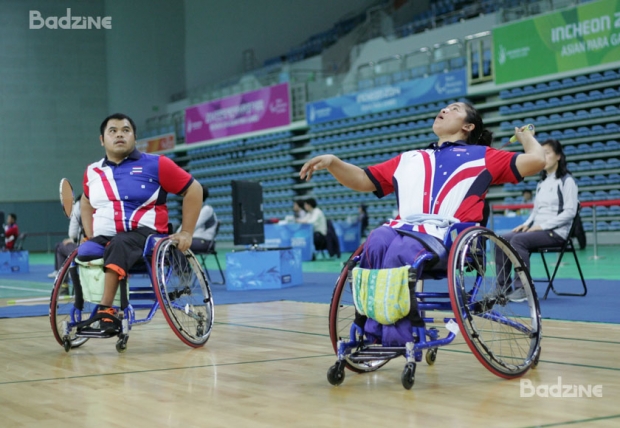 The winners of the wheelchair mixed final were Thailand’s Jakarin Homhaul / Amnouy Wetwithan (pictured below). This is the second straight Asian Para Games at which Wetwithan has been responsible for Thailand’s only gold in para-badminton.